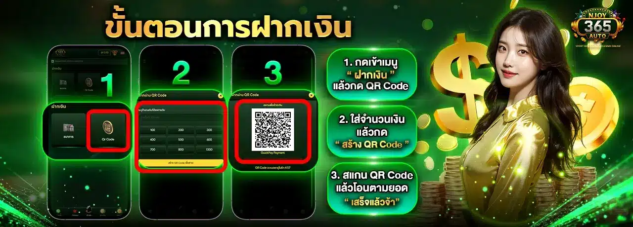 หนึ่งในจุดเด่นของ NJOY365 คือระบบการเงินที่สะดวกและรวดเร็ว ไม่ว่าคุณจะฝากเงินเพื่อเริ่มเล่นหรือถอนเงินออกมาใช้ก็ทำได้ง่าย ๆ ดังนี้